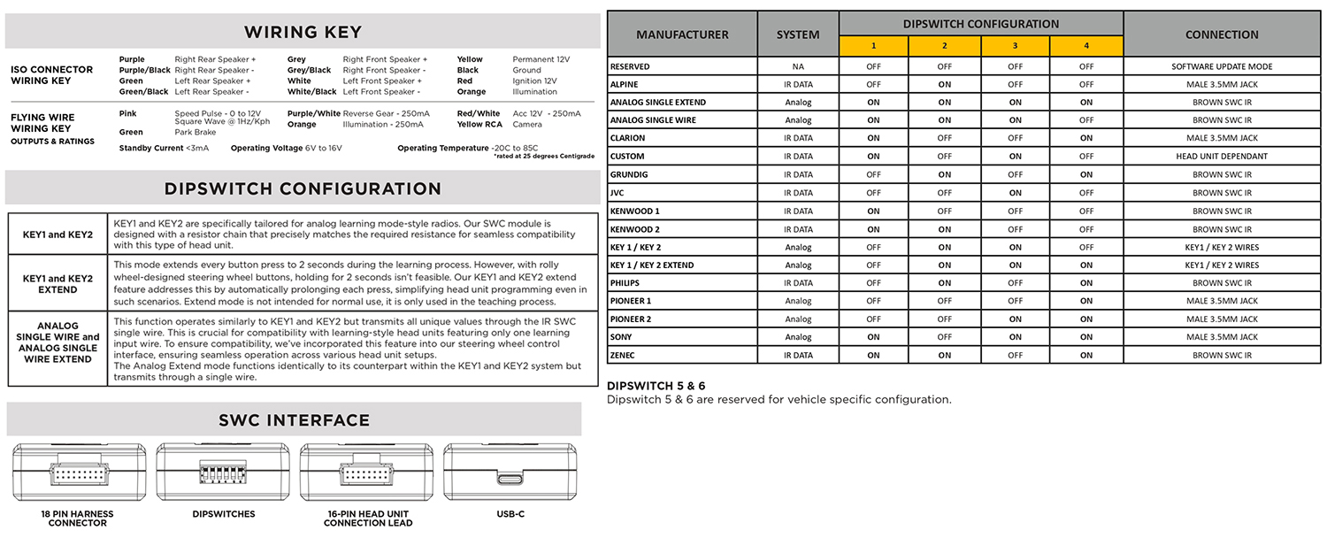 Steering Wheel Control Interface Adaptor. Connecting to the original radio connector and plugging in to the back of the new head unit is simple to fit.