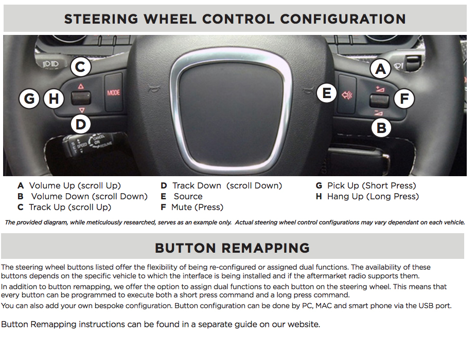 ACV 42XAD002 Audi A1, A3, A4, A6, Q3, TT Steering Stalk Control Adaptor Phone Button Support