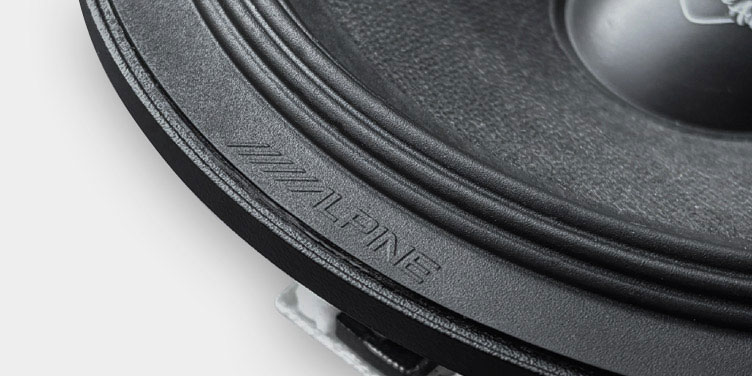 Alpine’s HAMR Surround (High-Amplitude Multi-Roll) allows for a maximum cone excursion, while maintaining excellent control. This results in strong bass at high volumes without distortion.
