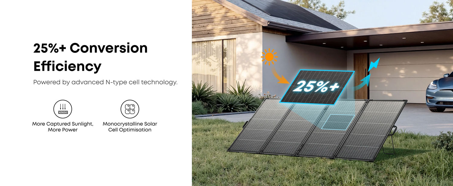 - 25%+ Conversion Efficiency with Next-Gen Solar Cells: Engineered with advanced N-type solar cells that minimise energy loss while performing in high temperatures—delivering more power, faster, even in demanding conditions.