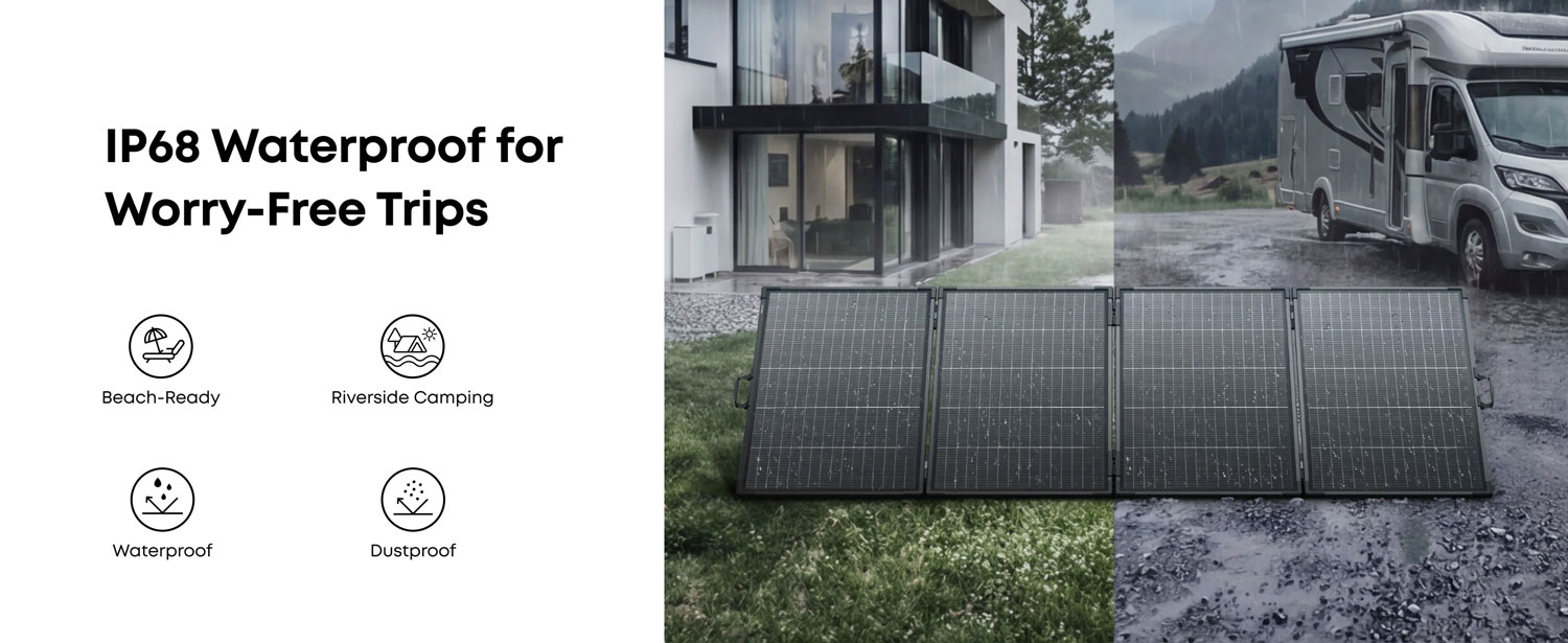 - 10-Year Lifespan, 5-Year Warranty, and IP68 Waterproof: Built to last with a reinforced aluminium frame and impact-resistant materials. Rated IP68 for water and dust resistance—your panels stay protected in rain, mud, and beyond.