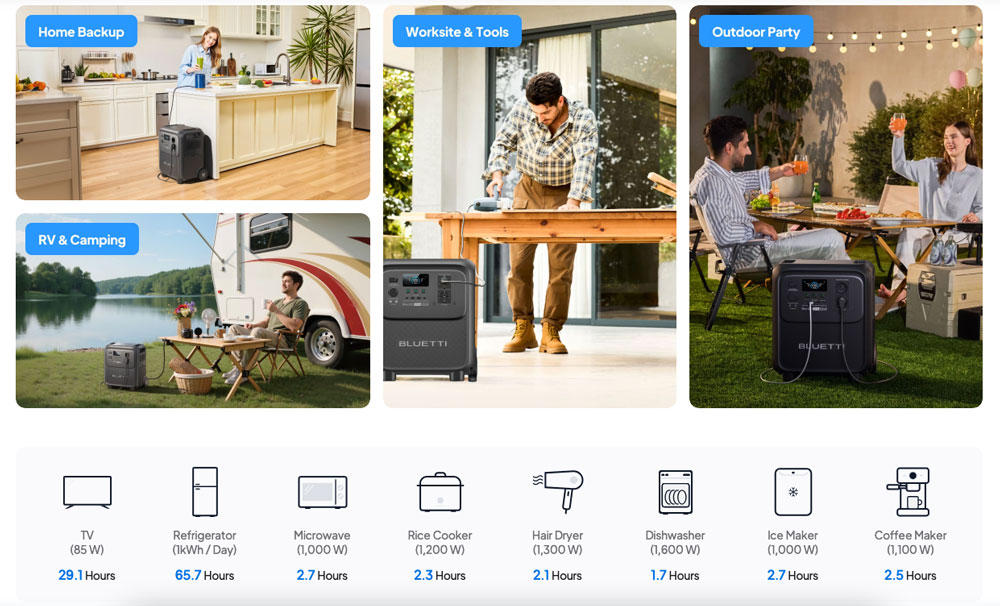 The Elite 320 delivers 3,200 Wh of energy with a continuous output of 1,800 W and peaks at 3,600 W, powering up to 9 devices at once. Whether for home backup, outdoor events, RV use, or off-grid power, it's built to handle a variety of needs.