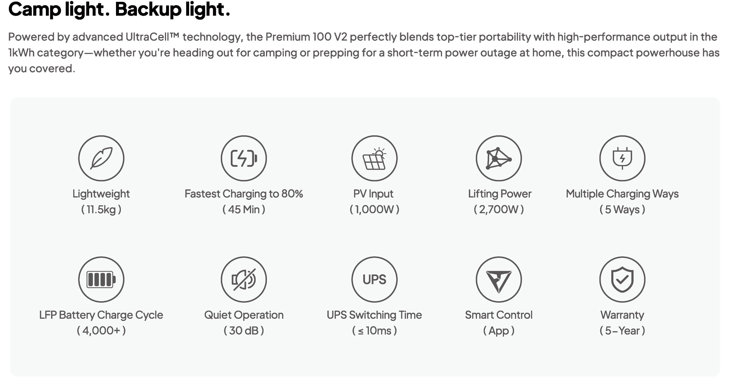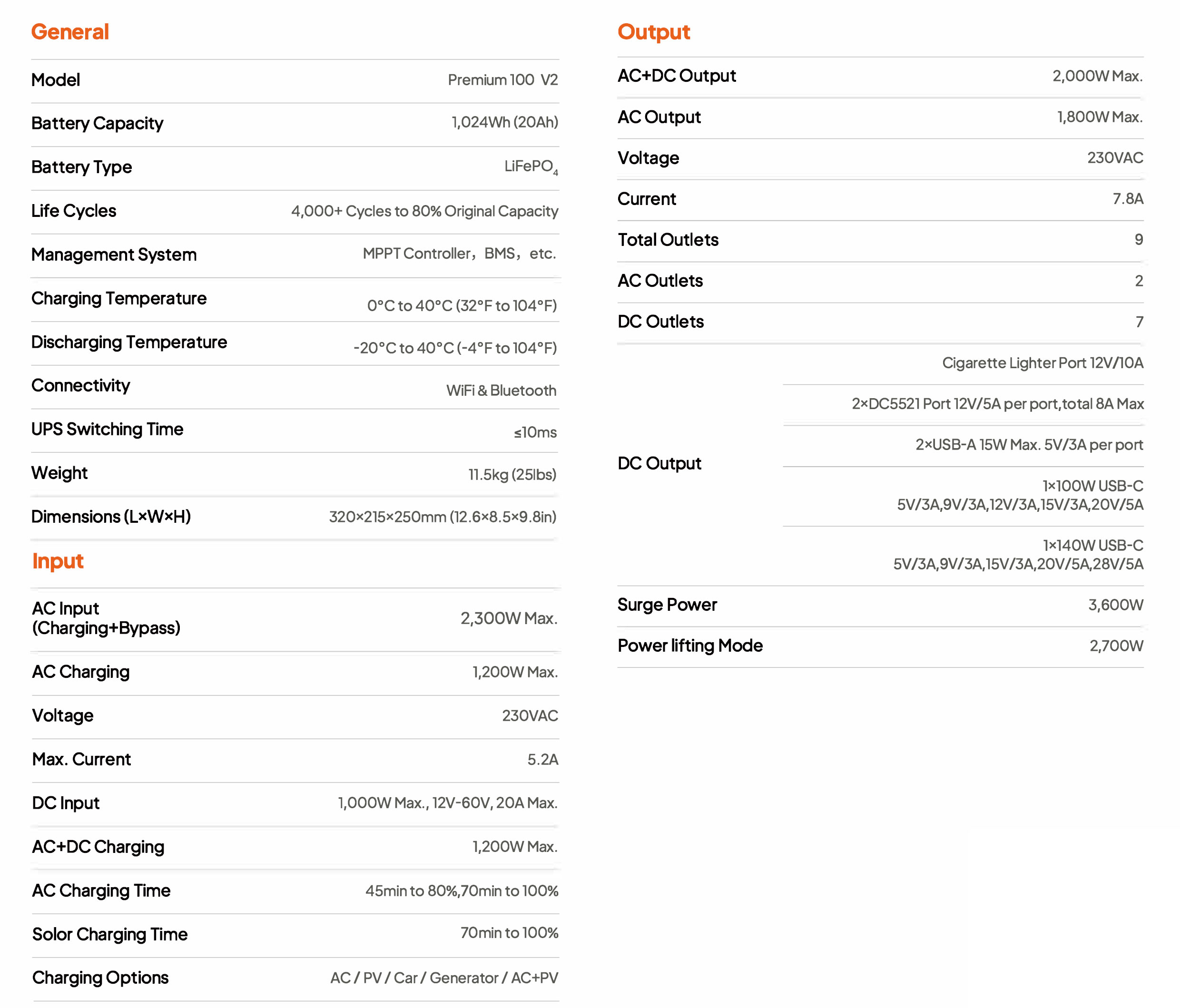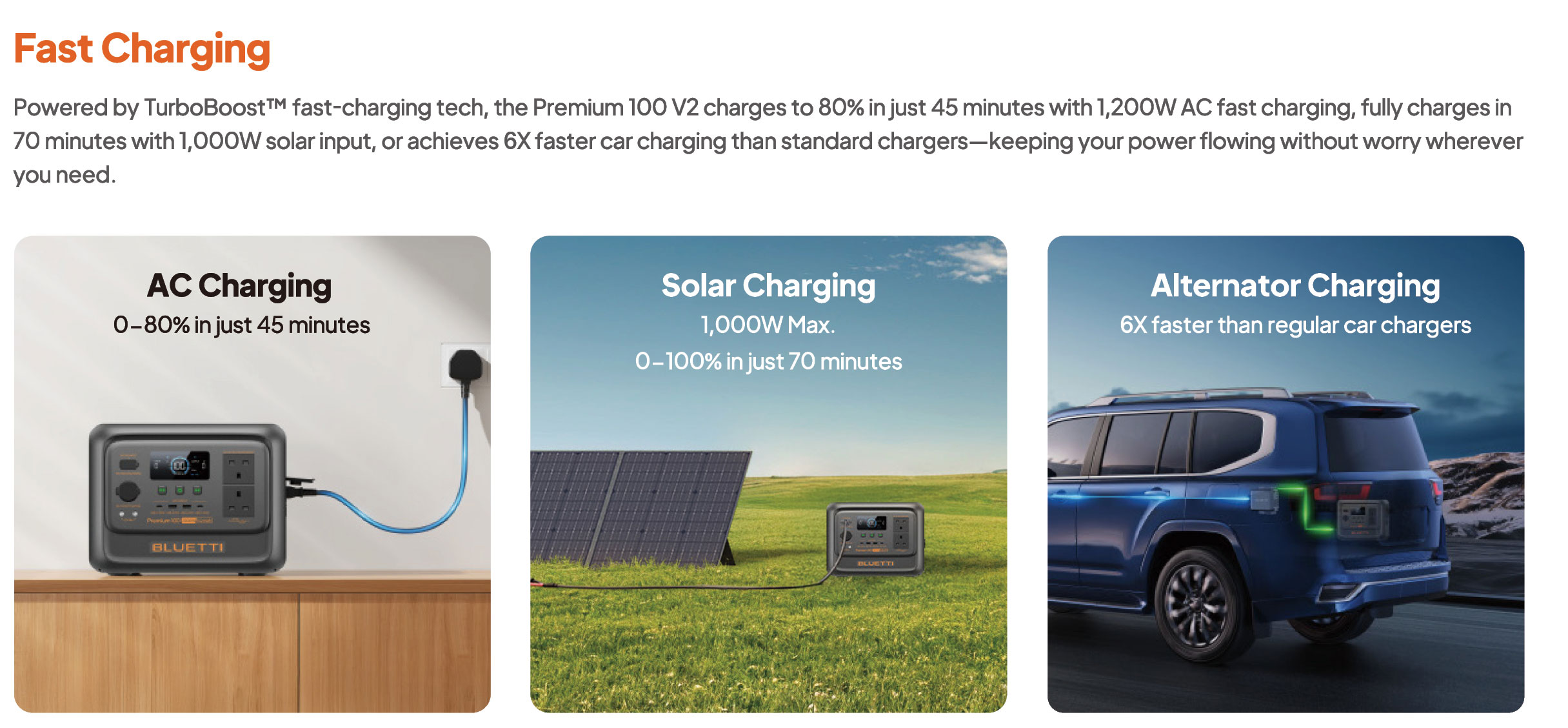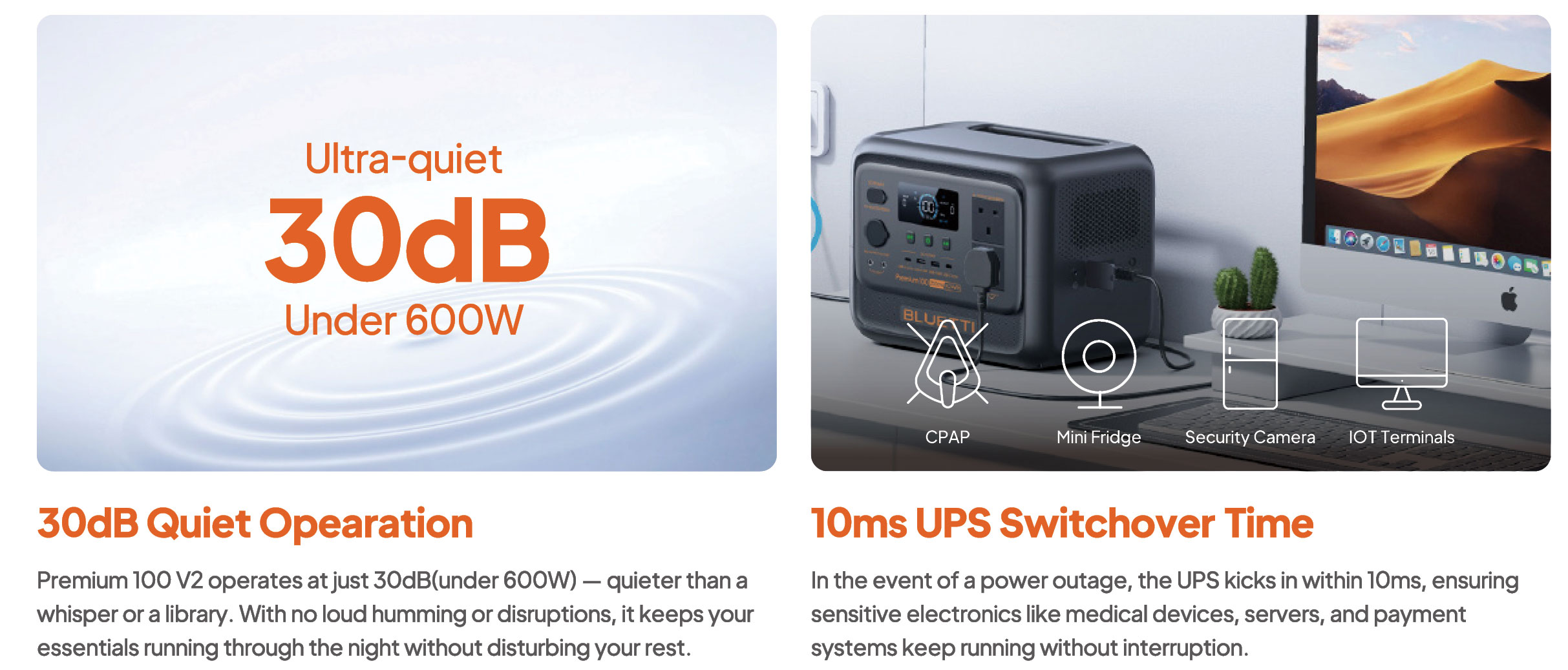 - BLUETTI PREMIUM 100 V2 AC/DC Portable Battery Power Station 1800W / 1024Wh (5 Year Warranty)