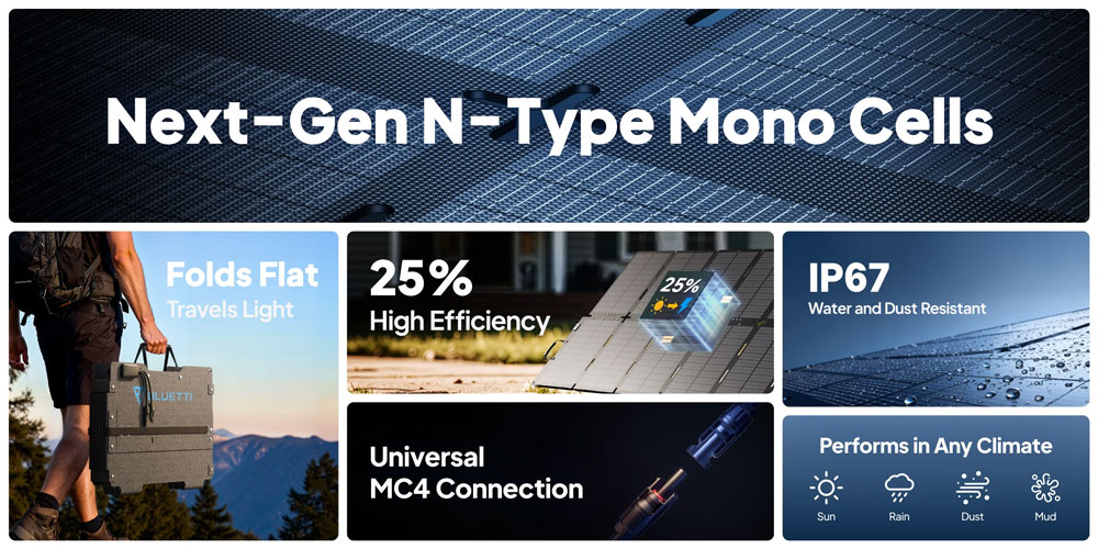 - 2 x BLUETTI SORA 500 Next Gen N-Type Mono Cells IP67 Foldable Solar Panel - 500W (Total 1000W)