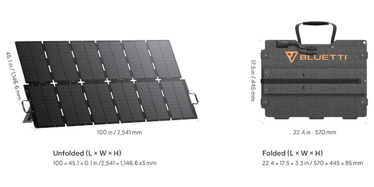 - Dimensions (Unfolded): 100 × 45.1 × 0.1 in / 2541 × 1146.6 × 3 mm