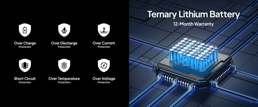 - Optimal safety: built-in ternary lithium battery