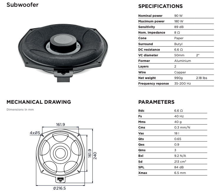 Focal INSIDE ISUBBMW8 Custom Fit 8" UnderSeat 8 ohms Subwoofer for BMW