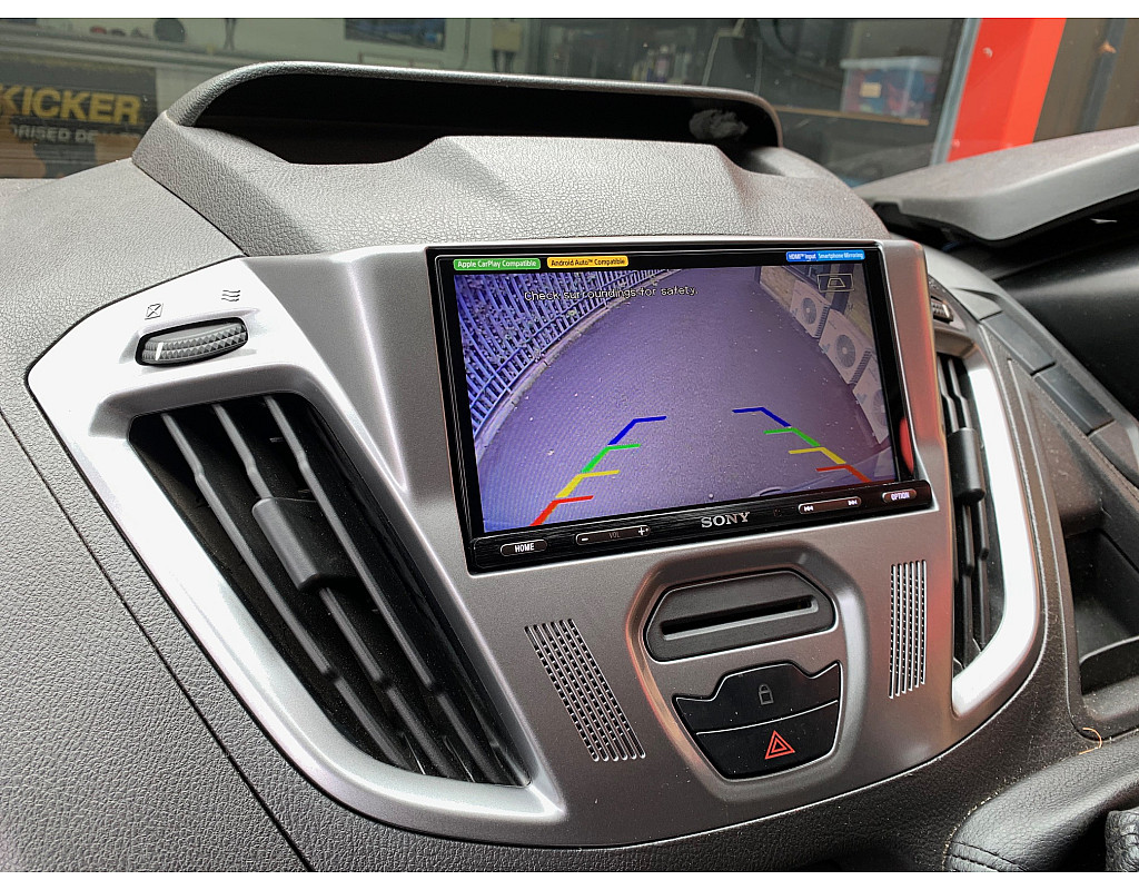 Ford Transit Custom 2017 model upgraded with Sony XAV-AX5650 using the InCarTec FK-9261/2 installation kit and we installed the InCarTec CVC-FOR-03 high level brake light rear view camera.