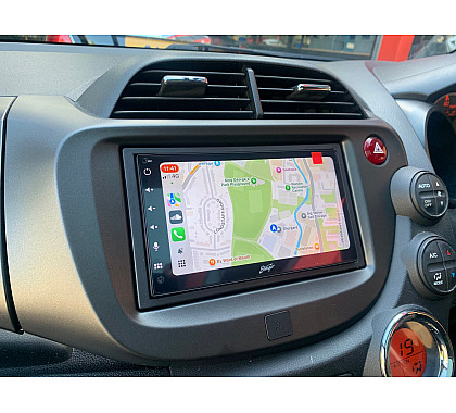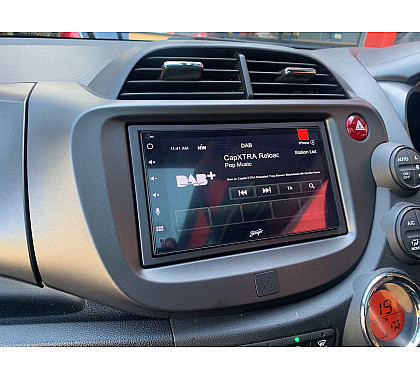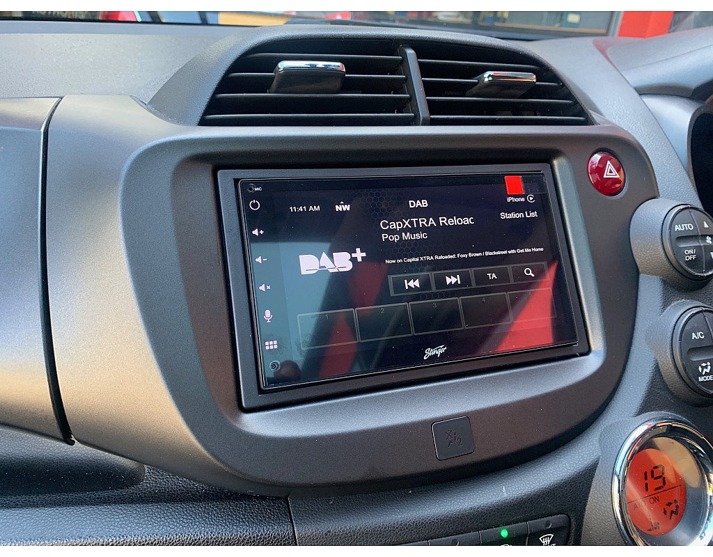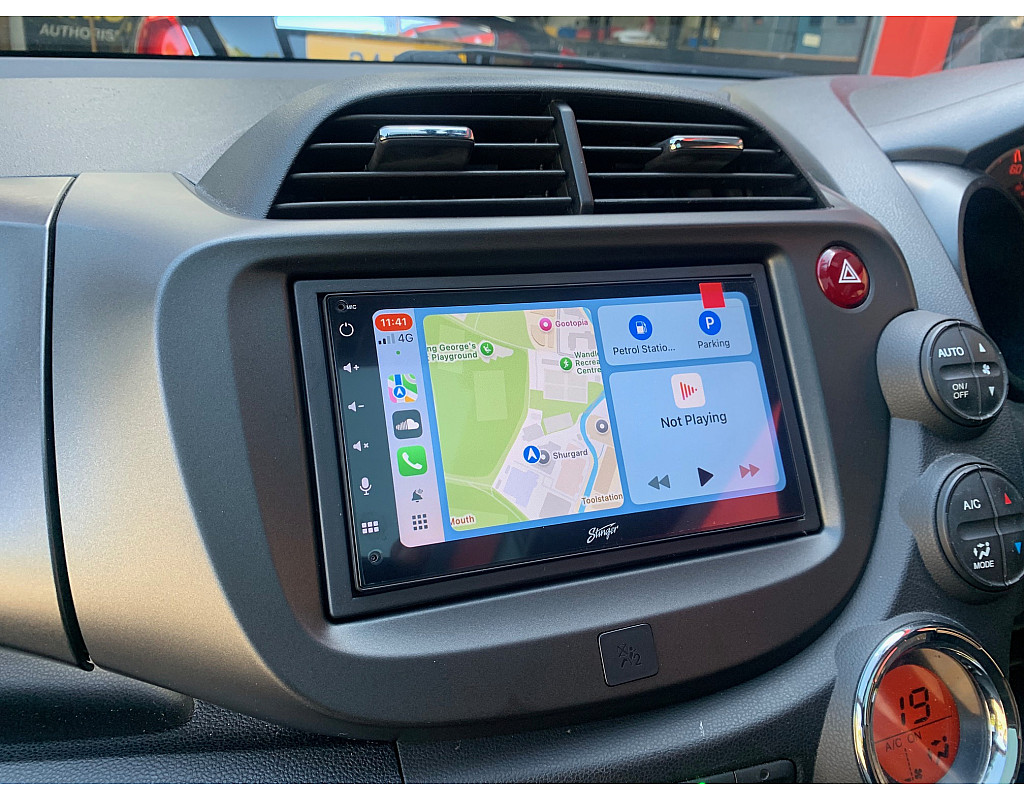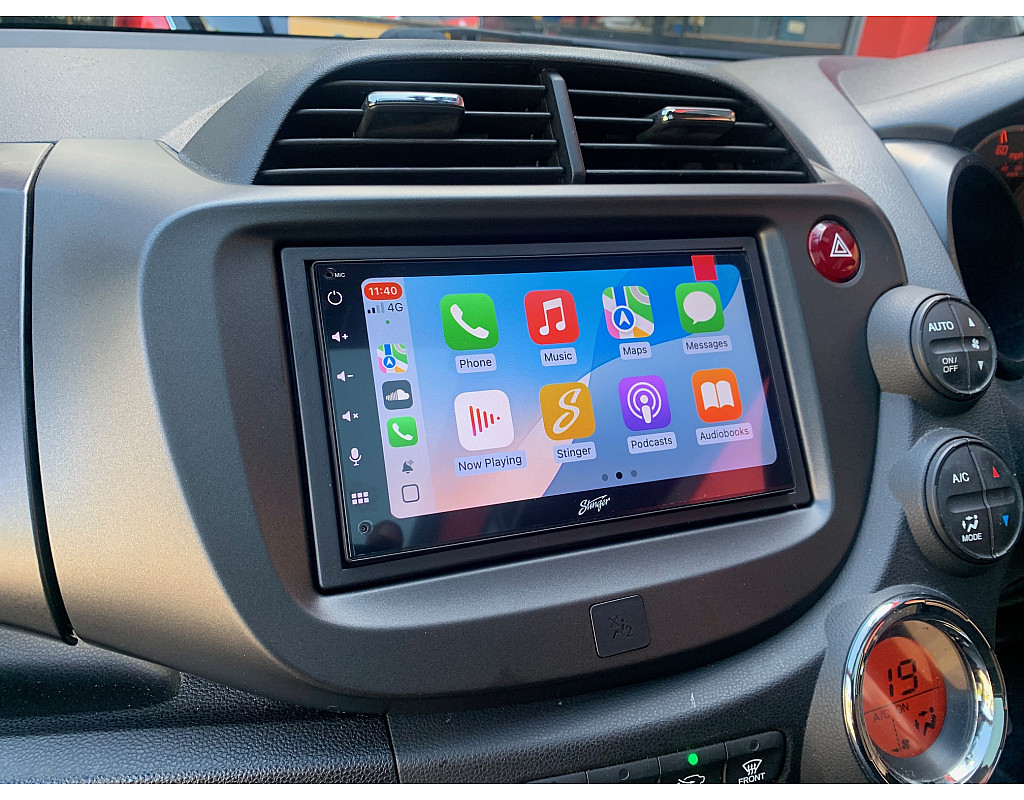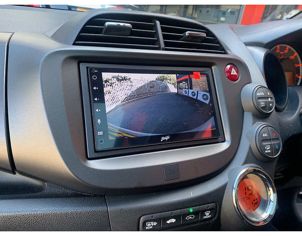 Honda Jazz 2013 model upgraded with the Stinger IE268E Wireless CarPlay stereo and the Pioneer ND-BC9 reversing camera.