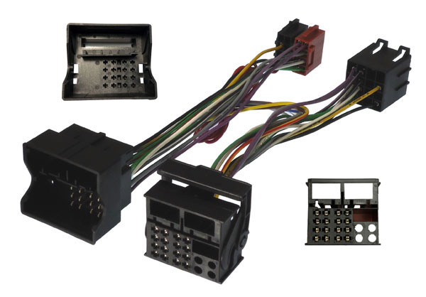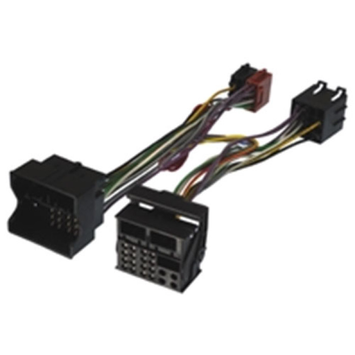 BMW, Land Rover, Mini Quadlock to ISO T cable for cars 2005 onwards without Ignition supply in the radio connector. This cable is used in conjunction with an ISO Mute harness supplied with the hands-free car kit.