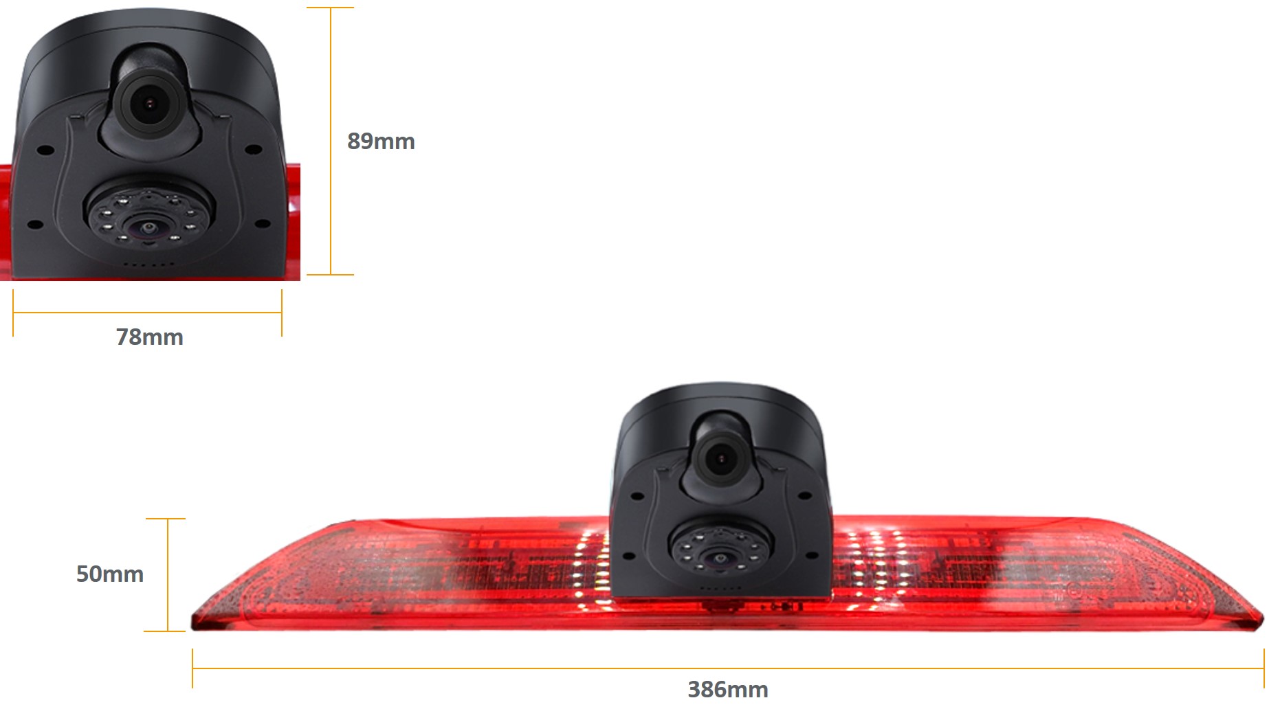 This camera replaces the high level brake light at the rear of the vehicle and provides additional visual safety to the back of the vehicle, whilst still maintaining it's original appearance.