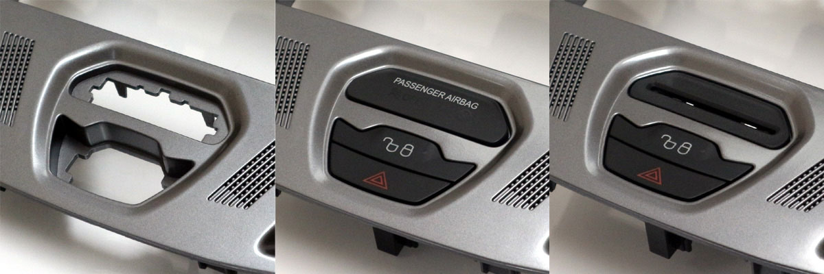 An additional airbag light unit or blanking plate is also required. If the vehicle originally had a passenger airbag status light in the radio panel, a replacement airbag status light unit (FORD-F1799698) must be fitted, as failure to refit one will cause airbag warning lights to appear on the instrument cluster. If the vehicle did not have a passenger airbag status light, then a blanking plate (FORD-F1832265) is required to fill the space in the new fascia.