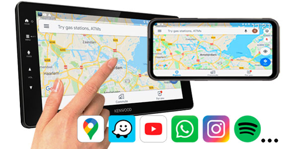 By installing the “EasyConnection”, your mobile phone is seamlessly displayed on the receiver's large screen wired or wirelessly. You can enjoy a variety of apps such as Waze, YouTube, and Instagram. (Touch control via USB wired Android only)