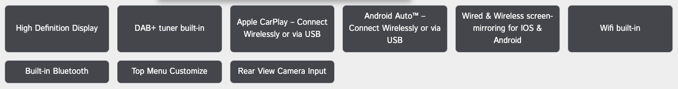- Visual Source Mode Mirorring / CarPlay / Android Auto.