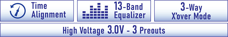 - 13 Band EQ & Digital Time Alignment to optimise the sound performance