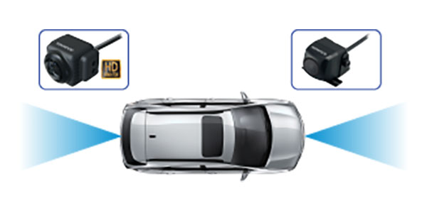 Enable users to add an optional rear view camera that enhances safety while backing up and monitoring behind your vehicle. Built-in, adjustable parking guidelines further add to its effectiveness. Supports HD camera systems with 1280×720 pixel resolution, displaying the camera's footage on the High Definition Screen. Adding a front camera (sold separately), further enhances driver safety and convenience by offering a clear view of the vehicle's immediate front.