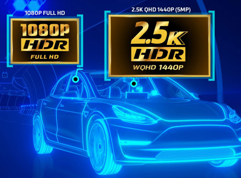 - 2.5K 1440P HDR front cam & Full HD 1080P HDR rear cam