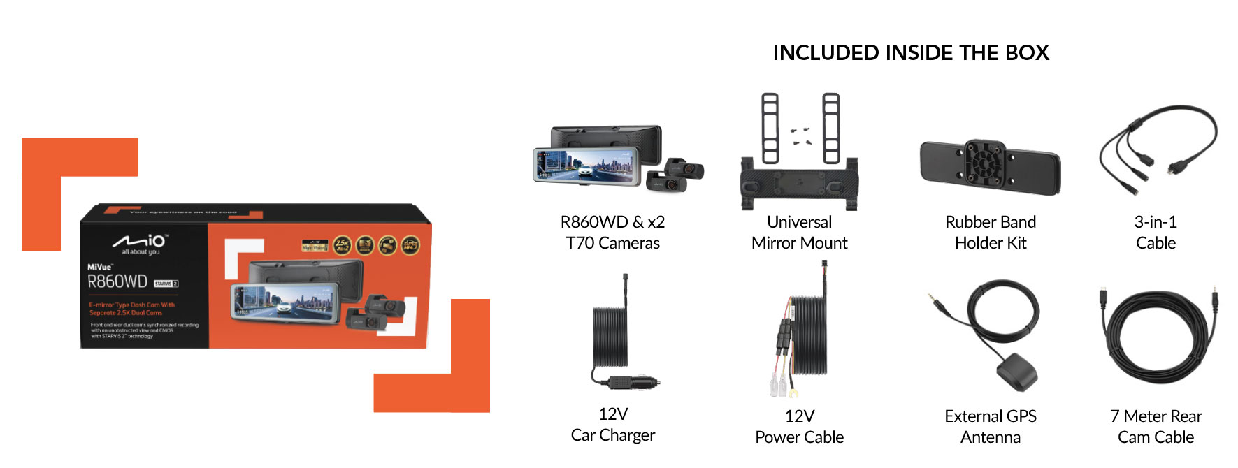 Mio MiVue R860WD Front and Rear Touch Mirror GPS, Wi-Fi, Dash Cam With 64GB Memory Card
