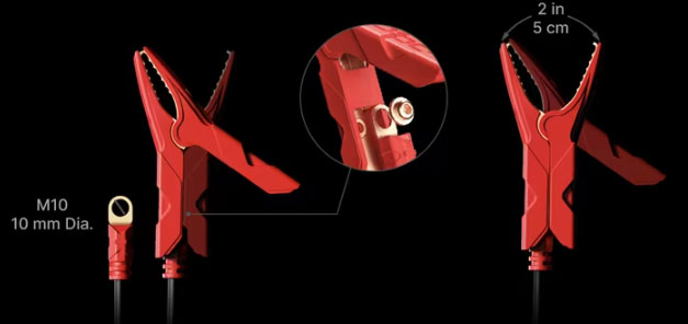 - Redesigned battery clamps with a needle-nose profile for improved clamping range, plus integrated M10 eyelets for permanent battery connections.