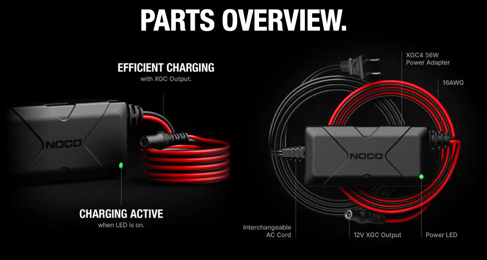 The XGC4 56-Watt XGC Power Adapter is a power supply for rapidly recharging NOCO Boost & Boost Max UltraSafe Lithium Jump Starters. Engineered to safely and efficiently recharge GB70, GB150, GB250+, GB251+ and GB500+ up to five times faster than traditional USB wall or car chargers.