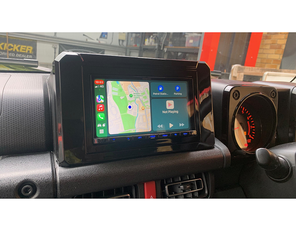 We’ve upgraded this Suzuki Jimny (2018) with a Kenwood DMX8021DABS head unit for crystal-clear sound, Connects2 CTKSZ13 fitting kit for a seamless install, and CAM-SZ2-RT camera retention lead to keep the factory camera working perfectly!